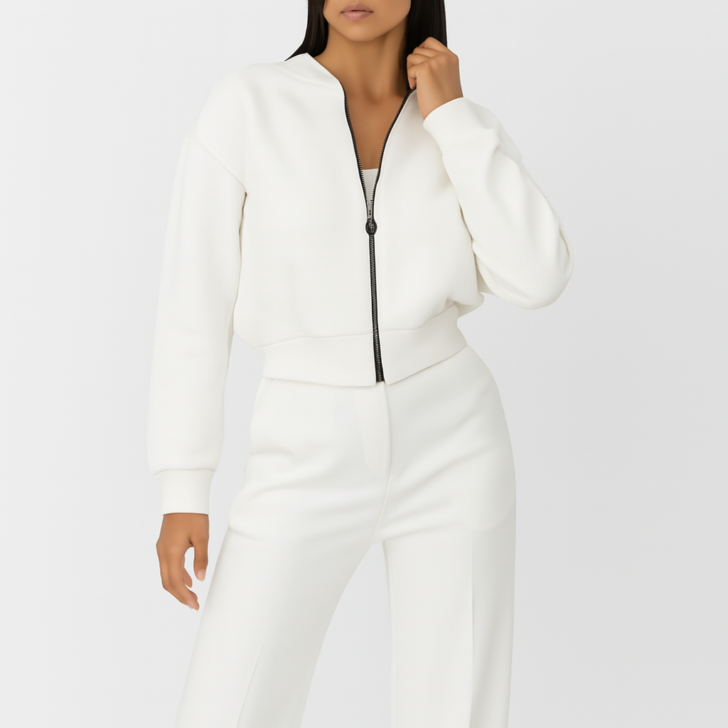 Découvrez Élane | Le Tailleur Élégance, un ensemble moderne qui dégage une élégance naturelle. La combinaison d’un cardigan zippé raffiné et d’un pantalon droit crée une silhouette chic, confortable et tout en maîtrise. Élane | Le Tailleur Élégance apporte une touche de sophistication à chaque tenue du quotidien.